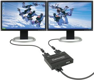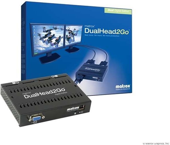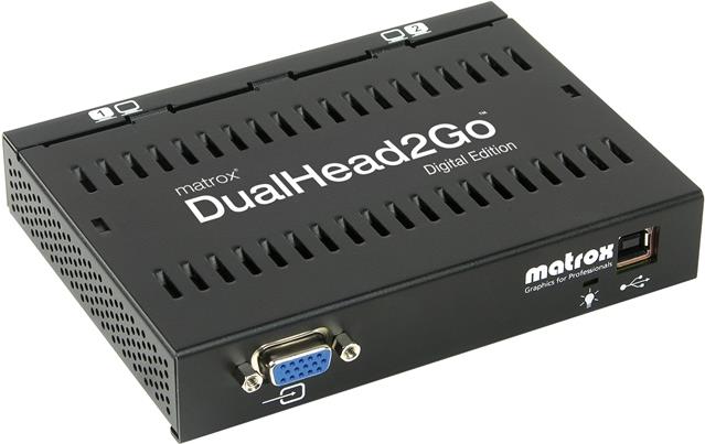 DualHead2Go und TripleHead2Go sind kleine schwarze Boxen, mit denen Sie zwei oder drei Monitore an Ihren Laptop oder Computer anschließen können. Sie werden an den VGA-, DVI- oder DisplayPort-Ausgang angeschlossen und nutzen den Grafikprozessor Ihres Systems zur Bereitstellung von hochwertiger 2D-, 3D- und Videodarstellung über alle Monitore. Sie sind ideal geeignet und validiert für Plattformen, die bisher auf nur ein Display beschränkt waren, für speziell integrierte grafikbasierte Desktop-Computer und Laptops, oder für Systeme, die keine Erweiterungssteckplätze aufweisen oder deren Erweiterungssteckplätze geschlossen sind.