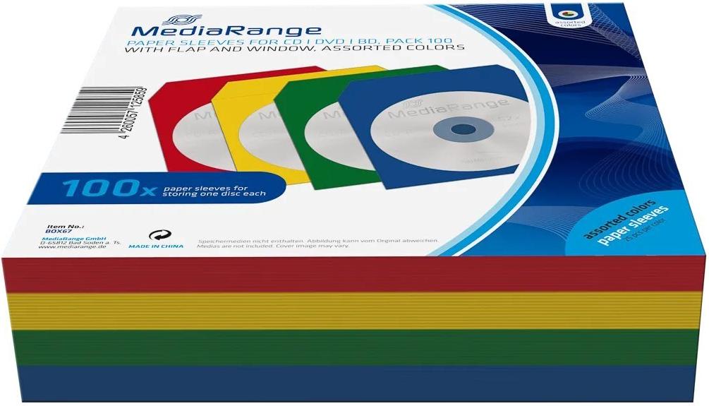 MediaRange CD-paper color-pack - CD-Hülle - Kapazität: 1 CD (Packung mit 100) (BOX67)