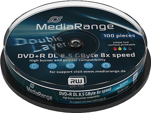 Die Double Layer Technologie bietet nahezu die doppelte Kapazität wie eine herkömmliche DVD. Durch die Vergrößerung des Datenvolumens können MediaRange DVD+R DL-Discs auch für hochauflösende Filme in Kinoqualität mit einer Spielzeit von über zwei Stunden oder bis zu vier Stunden im hochauflösenden MGEG-2-Format verwendet werden. Darüber hinaus sind die MediaRange DVD+R DL-Discs mit DVD-ROM-Laufwerken und DVD-Playern kompatibel.
