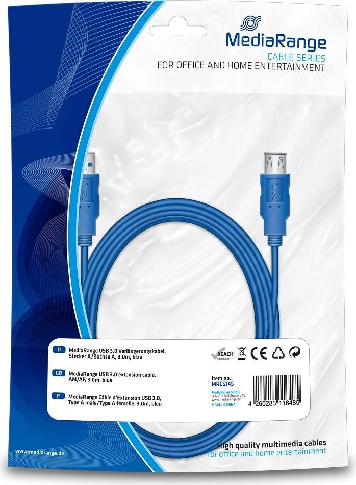 MediaRange - USB-Verlängerungskabel - USB Typ A (W) zu USB Typ A (M) - USB3.0 - 3,0m - Blau (MRCS145)