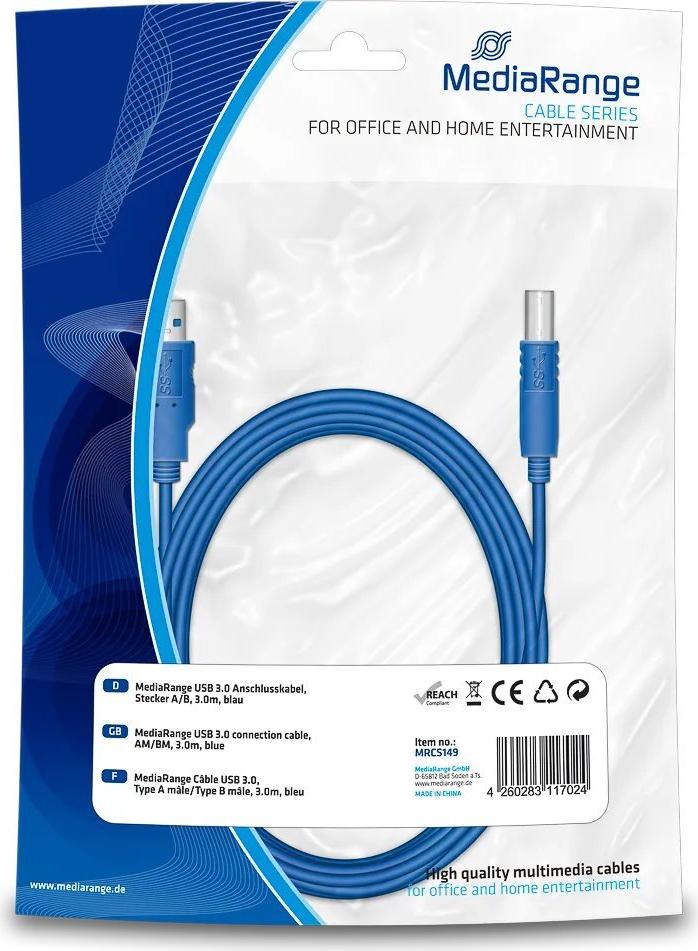 MediaRange USB Kabel A -> B St/St 3,00m blau USB3.0 (MRCS149)