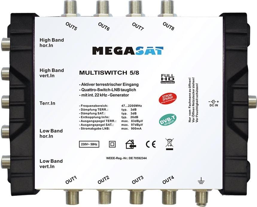 | Produktbeschreibung | Megasat Multiswitch 5/8 - Multiswitch Satelliten-/terrestrisches Signal |