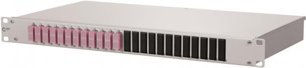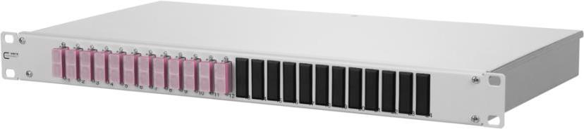 LWL-Patchpanel oPDAT fix 24 Port 12x SC-D Kupplungen, Festeinbau, OM4, teilbestücktFesteinbauleichte Aluminium-Konstruktionabnehmbare FrontplattePigtails in Standardspleißkassette mit Crimpspleißhaltern eingelegt und abgesetztPigtails gereinigt und in Kupplungen eingestecktDas 19 Zoll, 1HE LWL-Patchfeld für den Festeinbau ist mit 12 SC-D Kupplungen bestückt, die mitgelieferten Pigtails sind bei der Lieferung bereits in die Standardspleißkassette mit Crimpspleißhaltern eingelegt und abgesetzt, die Pigtails sind zudem gereinigt und in Kupplungen eingesteckt. Durch seine Aluminium-Konstruktion ist das Panel leicht. Die abnehmbare Frontplatte ermöglicht eine einfache Montage der Kupplungen. Es gibt mehrere Kabeleingangsmöglichkeiten auf der Rückseite des Panels. Die Befestigung des Kabels ist mit PG13,5, PG16 und PG21 bzw. M20 und M25 möglich. Dadurch, dass die Frontplatte abnehmenbar ist, ist die Kupplungsmontage sehr einfach.Ausstattung: leichte Aluminium-Konstruktionabnehmbare Frontplatte zur einfachen Kupplungsmontage rückseitigservicefreundliche, verschraubte AbdeckungFrontplatte abnehmenbarKennzeichnung durch einen festen ZahlenaufdruckTechnische Daten: Anschlüsse: SC-DHöheneinheiten (HE): 1 HEPatchpanel Ausführung: TeilbestücktProduktabmessung, Breite: 483 mmProduktabmessung, Höhe: 45 mmProduktabmessung, Länge: 243 mmWeitere technische Daten: 12x SC-D Kupplungen OM4Zubehör-Typ (Netzwerktechnik): LWL-PatchpanelLieferumfang: 12 SC-D Kupplungen,12 Blindabdeckungen,Spleißkassette,Deckel,Pigtails,PG16 ,Kabelbinder,Montageanleitung.Hinweis: Weitere Kupplungen und Pigtails separat bestellbar.
