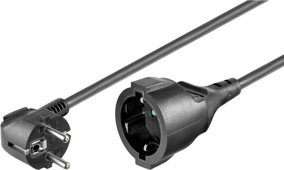 MicroConnect - Spannungsversorgungs-Verlängerungskabel - CEE 7/7 (W) zu CEE 7/7 (M) - Wechselstrom 250 V - 5 m - 90° Stecker - Schwarz