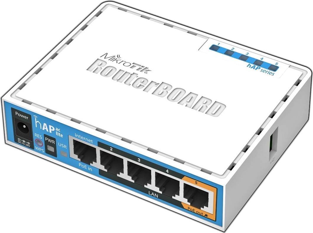Der hAP ac lite ist ein Dualband AP, der gleichzeitig WLAN für 2,4GHz als auch für 5GHz im ac Standard bereitstellt.