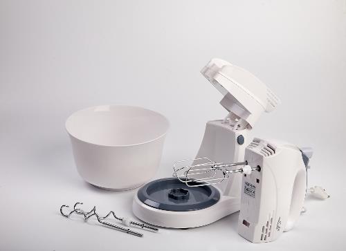 Nützliches Handrührgerät mit einer Leistung von 300 Watt. Es ist nicht nur handlich aber auch leistungsstark und somit in jeder Küche unentbehrlich. Fünf Geschwindigkeitsstufen gewährleisten eine problemlose Zubereitung unterschiedlicher Speisen oder Kuchen. Es eignet sich beispielsweise sowohl für das Schlagen von Eischnee als auch für das Kneten von Teig. Je nach Bedürfnis kann man auch Turbo-Taste für besonders schnelles Schlagen, Mixen oder Kneten benutzen. Das Handrührgerät stellt eine robuste Konstruktion dar, auf die man sich verlassen kann. Die integrierte Schüssel macht die Verwendung des Geräts bequemer, weil der Handrührer muss nicht in der Hand gehalten werden und man kann sich auf andere Tätigkeiten konzentrieren. Ein weiterer Vorteil ergibt sich daraus, dass die rotierende Rührschüssel wird automatisch angetrieben, was zur optimalen Vermengung der Zutaten beiträgt.Hauptmerkmale