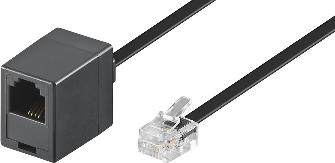 Wentronic Goobay Modularverlängerungskabel, Schwarz, 15 m - RJ11/RJ14-Stecker (6P4C) auf RJ11-Buchse (6P4C) (68258)