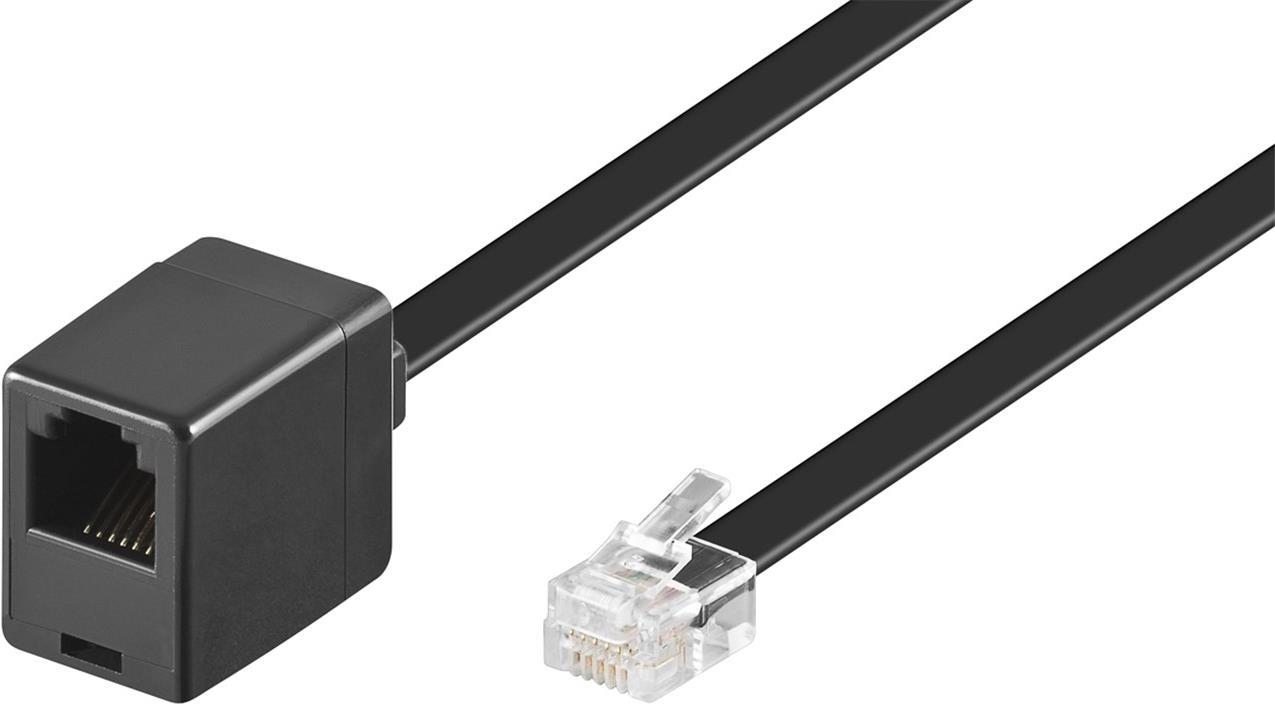 Wentronic Goobay Modularverlängerungskabel, Schwarz, 10 m - RJ12-Stecker (6P6C) auf RJ12-Buchse (6P6C) (68261)