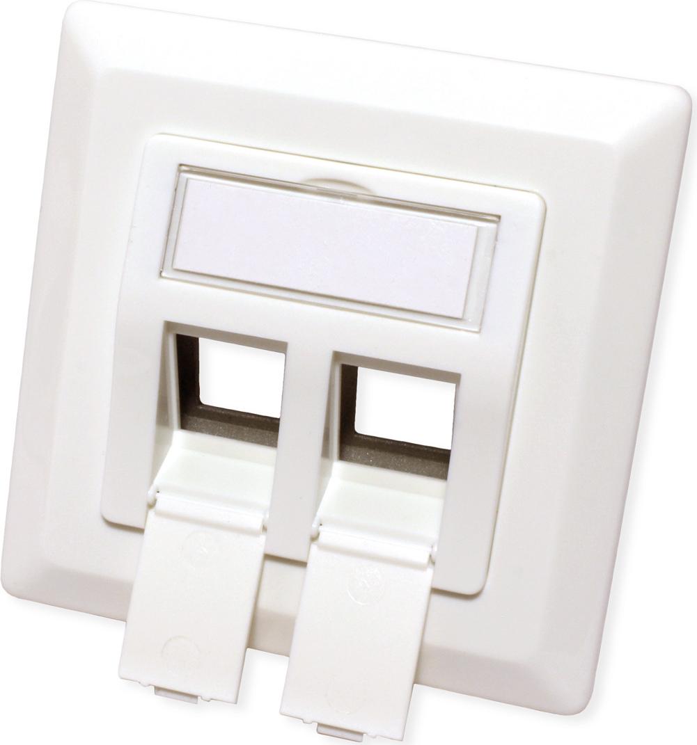 • Unterputz Anschlussdosenabdeckung nicht bestückt; für zwei ROLINE Kat.6(A) Keystones 26.11.0353/.0358/.0366