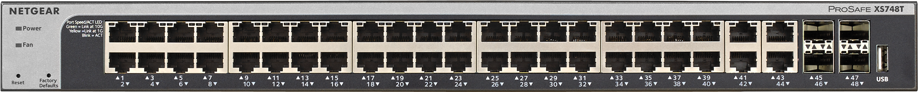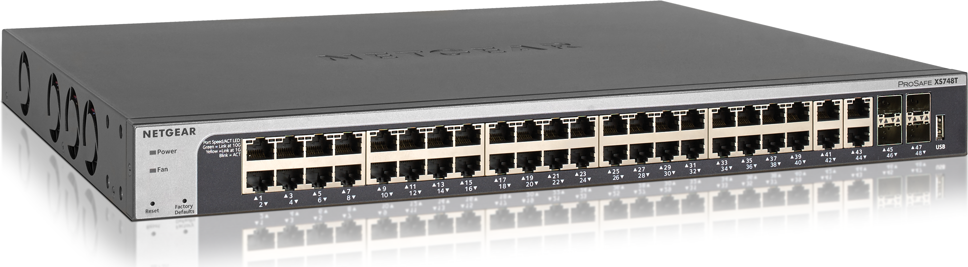 Der NETGEAR ProSAFE XS748T ist ein leistungsstarker Smart Managed Switch. Der NETGEAR 10-Gigabit-Smart-Managed Switch ist bewusst als die kosteneffiziente Möglichkeit entwickelt worden, um 10GbE-Konnektivität zu 10GbE-fähigen Servern und NAS-(Network Attached Storage)-Systemen zu ermöglichen. Sie können als Zentrum eines kleineren Netzwerkes oder als 10G-Aggregation / Access Switch in größeren Organisationen und auch als Workgroup-Access eingesetzt werden. Und eignen sich daher hervorragend, um 10GbE-Konnektivität bis hin zum Netzwerkrand (Edge) zu ermöglichen, während z.B. am anderen Ende ein 10GbE Fully Managed Switch angeschlossen werden kann. XS748T eignet sich auch sehr gut für kleinere Arbeitsgruppen, die eine hohe Bandbreite für Collaboration-Anwendungen oder das Bearbeiten und veröffentlichen von Inhalten mit hoher Datendichte.