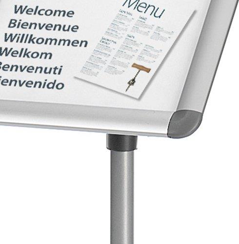 NOBO Infoständer DIN A4, Maße: (B)350 x (T)70 x (H)1.010 mm Farbe: silber, höhenverstellbarer Ständer, runder Tellerfuß (1902383)