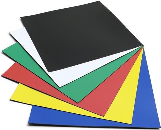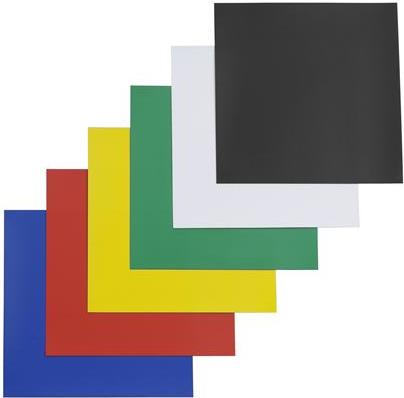 Quadratische Magnete für Displays oder Präsentationen. Verwenden Sie sie in der gelieferten Größe oder schneiden Sie sie entsprechend zu. Größe: 150 x 150 mm, Packungsinhalt: 6 Stück, farbig sortiert.