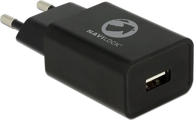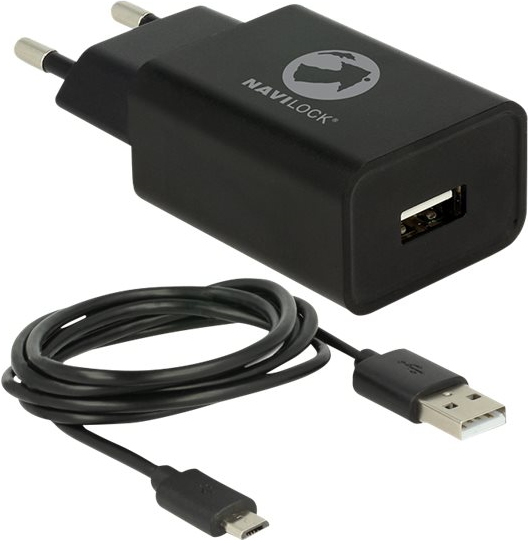 Navilock - Netzteil - 12 Watt - 2,4 A (USB (nur Strom)) - auf Kabel: Micro-USB - Schwarz (62847)