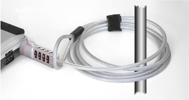 Mit diesem Navilock Notebookschloss können Sie verschiedene Geräte, wie Notebook, Beamer, Monitor etc. an jedem Ort sichern. Das 1,8 m lange Stahlkabel mit 4-stelligem Zahlenschloss lässt sich ganz einfach um Gegenstände, wie z. B. Tischbein, Stuhl oder Ähnliches anbinden und sichert somit Ihr Gerät vor Diebstahl.