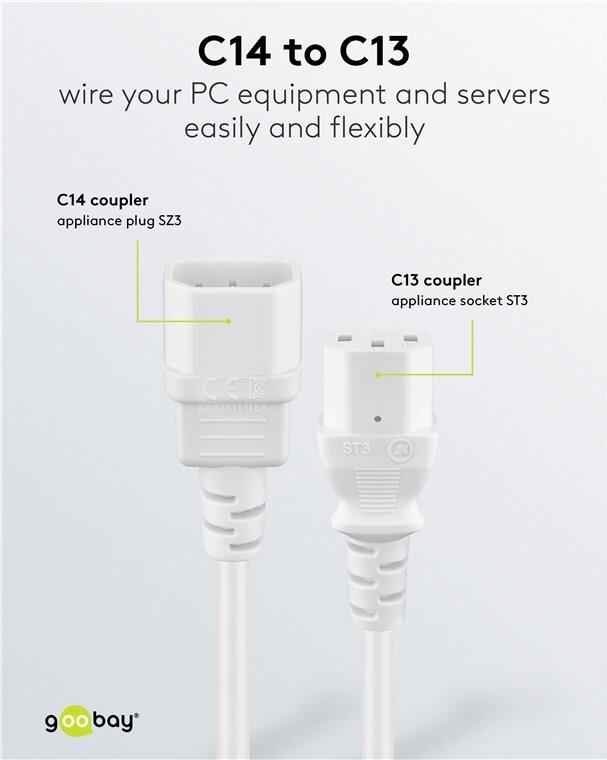 Wentronic Goobay Kaltgeräte Verlängerung 1 m, Weiß - Gerätestecker C14 (Kaltgeräteanschluss) > Gerätebuchse C13 (Kaltgeräteanschluss) (97582)