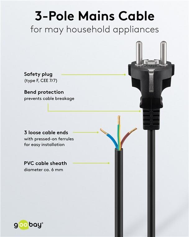 Wentronic Goobay Schutzkontaktkabel zum Konfektionieren, 1,5 m, Schwarz - Typ F (Typ F, CEE 7/7) > lose Kabelenden (51327)