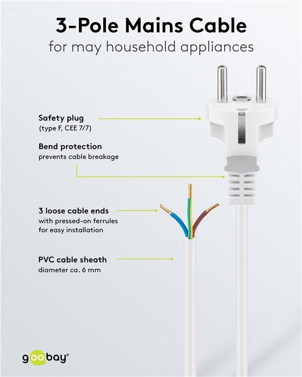 Wentronic Goobay Schutzkontaktkabel zum Konfektionieren, 1,5 m, Weiß - Typ F (Typ F, CEE 7/7) > lose Kabelenden (51328)