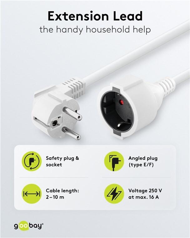 Wentronic Goobay Schutzkontakt Verlängerung, 2 m, Weiß - Typ F (Typ F, CEE 7/7) > Schutzkontaktbuchse (Typ F, CEE 7/4) (93091)