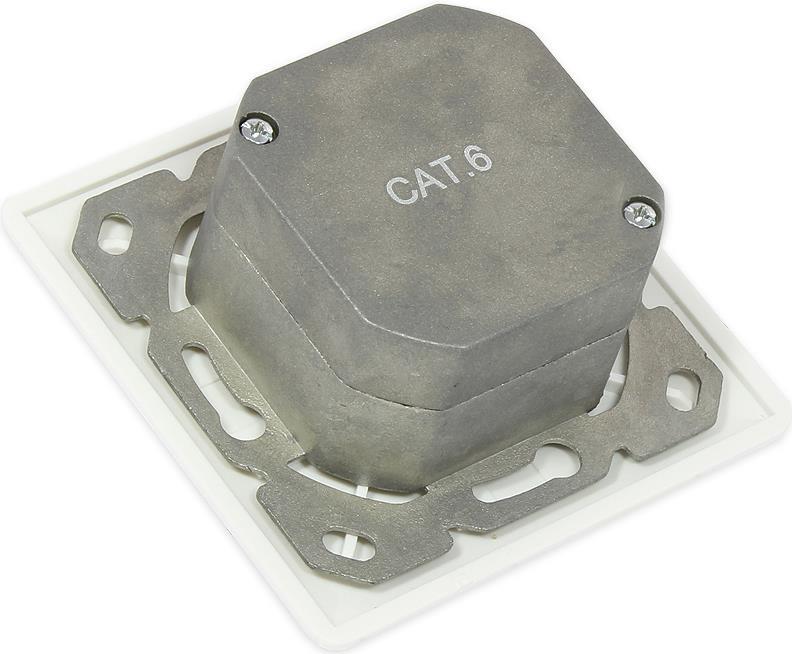 Netzwerkdose Cat. 6, 2xRJ45, geschirmt, UP, DESIGNFÄHIG, vertikale Kabelzuführung, signalweiß RAL9003, Good Connections (GC-N0024)