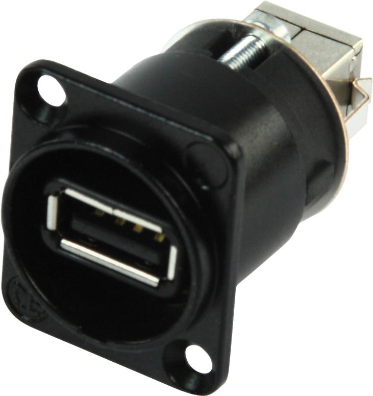 Mit steigender Digitalisierung erhöht sich die Schnittstellenproblematik zwischen Audio-/Video Netzwerken, EDV Anlagen, MP3, Camcorder, etc. Eine robuste Lösung wird gebraucht. Neutriks reversible USB-Durchführung (Typ USB A und USB B) im standardisierten D-Gehäuse löst dieses Problem.Beschreibung