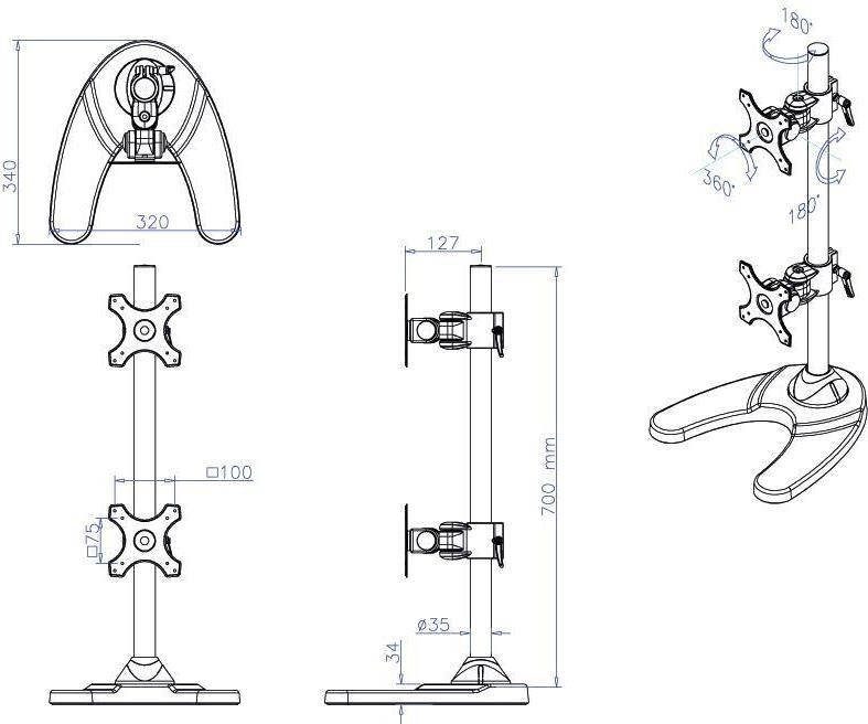 • Neomounts FPMA-D700DDV 2fach Monitor-Standfuß 25,4 cm (10) - 68,6 cm (27) Schwarz Höhenverstellbar, Neigbar, Schwenkbar, Rotierbar