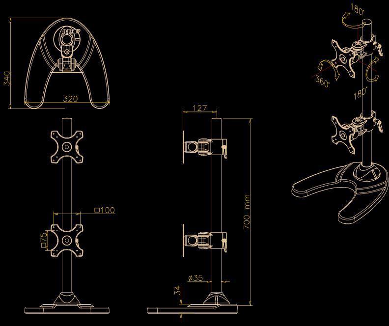 Halter-Ausführung: Höhenverstellbar,Neigbar,Schwenkbar,Rotierbar