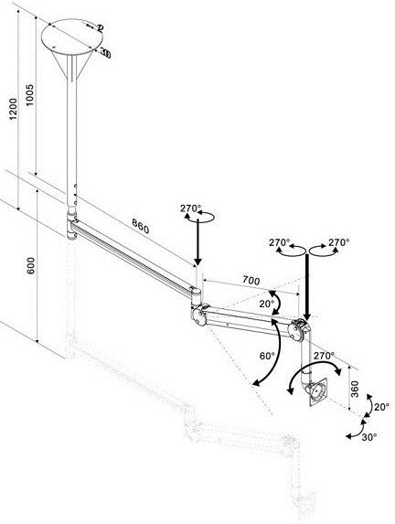 Neomounts by Newstar FPMA-HAC100 - Befestigungskit (Deckenmontage, Gelenkarm) für LCD-Display (neig- und schwenkbar) - Grau - Bildschirmgröße: 25,4 - 61cm (10" - 61,00cm (24")) - Montageschnittstelle: 100 x 100 mm, 75 x 75 mm (FPMA-HAC100)