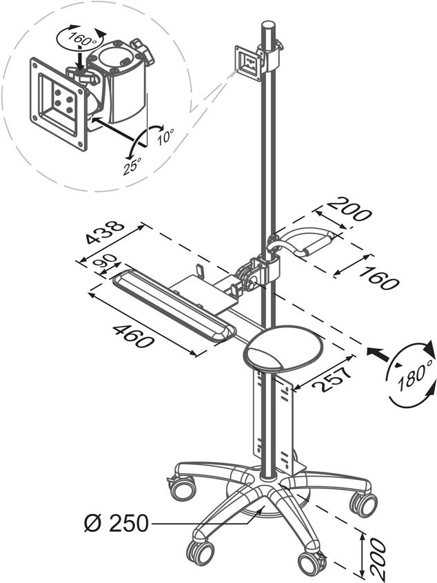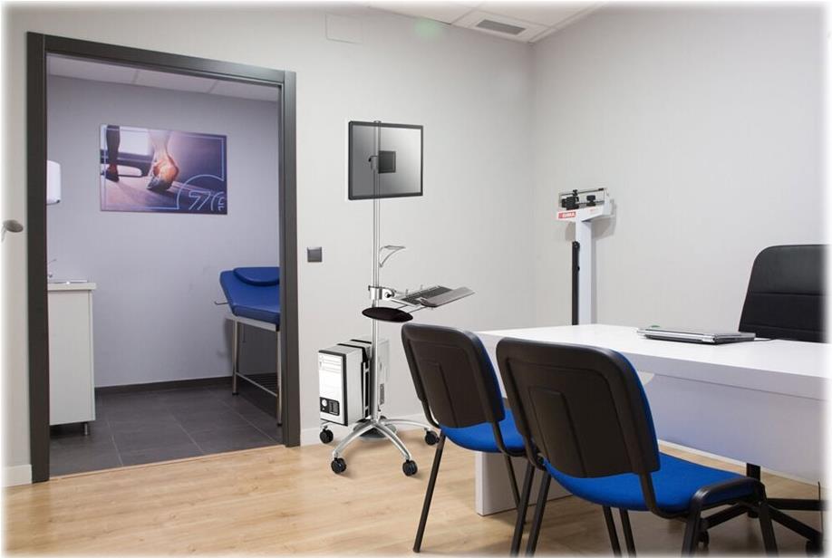 Mit dieses Neomounts Gerät, die FPMA-MOBILE1800, erstellen Sie einen mobilen Arbeitsplatz. Auf dieses Gerät montieren Sie einen flachen Bildschirm, PC oder Notebook, Tastatur und Maus.