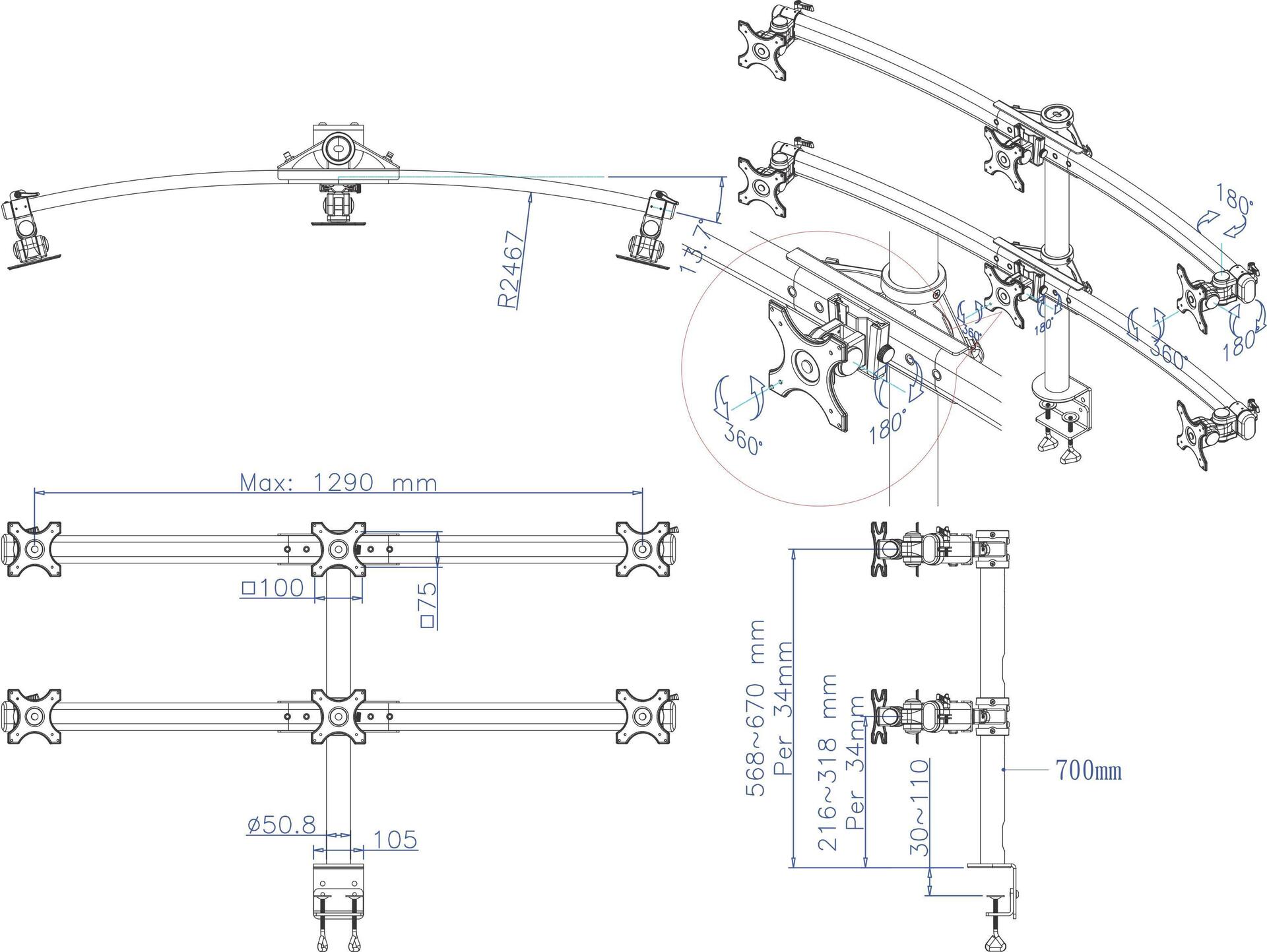 Neomounts FPMA-D700D6 - Befestigungskit - für 6 LCD-Displays (full-motion) - Schwarz - Bildschirmgröße: 48.3-68.6 cm (19"-27") - Klemmmontage, Tischmontage