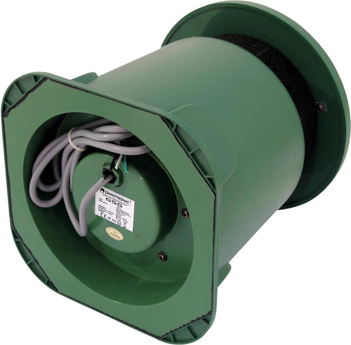 Omnitronic GSG RasenlautsprecherGartenlautsprecherGartenlautsprecher2-Wege-Koaxialsystem100-V-Trafo mit 2 LeistungsanzapfungenIm wetterfesten Kunststoffgehäuse (IP 44)Anschluss über offene KabelendenSaftig satt-grünes Gehäuse für Integration im englischen RasenFür Beschallungsanlagen im AußenbereichTechnische Daten: Farbe: GrünGewicht: 2.3 kgProduktabmessung, Breite: 230 mmProduktabmessung, Höhe: 280 mmWeitere technische Daten: Eingangsspannung: 100 VKomponenten: 10 cm Lautsprecher (4)Nennleistung: 10 W RMS (grün)20 W RMS (weiß)COM (schwarz)Empfindlichkeit: 95 dB, ±3 dB (1 W, 1 m)Max. Schalldruck: 100 dB (1 m)Frequenzbereich: 80 Hz - 15 kHzMaße (H x B x T): 215 x 215 x 245 mmGewicht: 2,1 kg\"\"