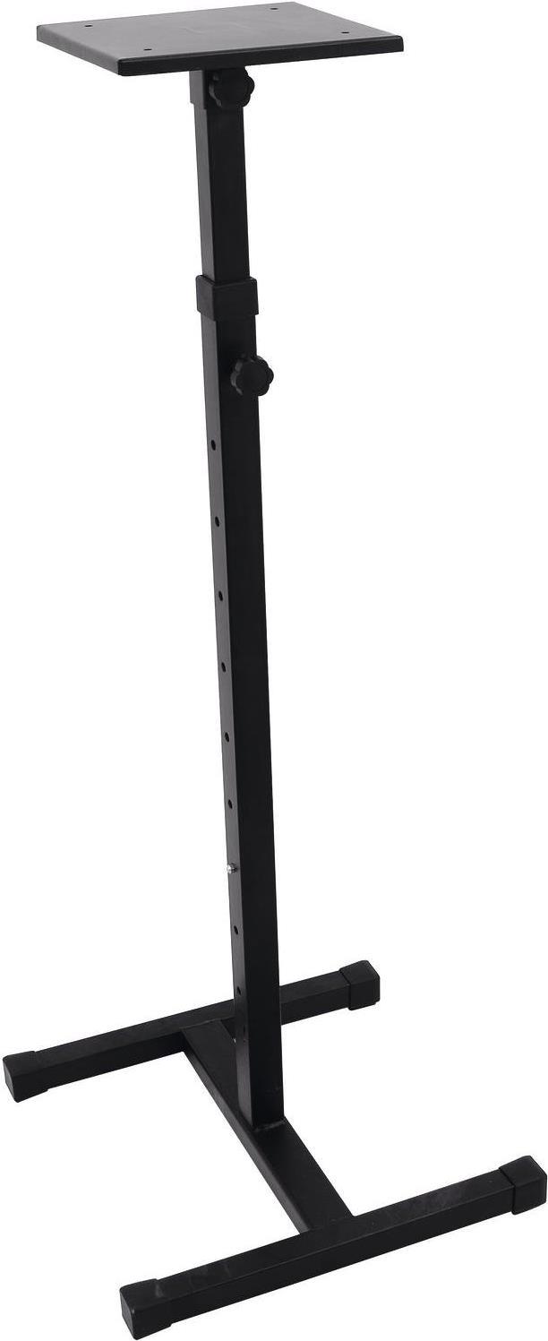 OMNITRONIC MO-1 MonitorständerHochwertiger Monitorständer.Hier sind Monitore sicher! Wenn es um Monitore in den eigenen vier Wänden oder im Studio geht, dann hat jeder so seine eigene Philosophie. Der eine positioniert seine Boxen lieber etwas höher, ein anderer etwas niedriger und noch ein ganz anderer versucht zwischen Boxen und Hörer ein gleichseitiges Dreieck entstehen zu lassen. Doch jeder nimmt seine Einstellungen aus einem bestimmten Grund vor: Man will schlicht die Musik optimal hören. Um diesem Ziel einen Schritt näher zu kommen, stellen wir Ihnen jetzt unser hochwertiges Monitorstativ zur Seite. Es wurde aus Stahl gefertigt, ist besonders für Nahfeldmonitore geeignet und verfügt über einen automatisch einrastenden Sicherheitsbolzen, damit die eingestellte Höhe auch garantiert beibehalten werden kann. Mit diesem Hilfsmittel ausgestattet können sie nun für sich selber auf die Suche nach der perfekten Stellung gehen. Viel Spaß dabei! \"\"Ausstattung: Besonders geeignet für NahfeldmonitoreHöhenverstellbarSicherung des Teleskoprohres über automatisch einrastenden SicherungsbolzenAus StahlTechnische Daten: Weitere technische Daten: Max. Traglast: 18 kgAuflagefläche: 0,2 x 0,22 mMin. Höhe: 0,93 mMax. Höhe: 1,48 mStandfläche: 0,4 x 0,4 mGewicht: 4 kgVersandgewicht: 3.800 kg