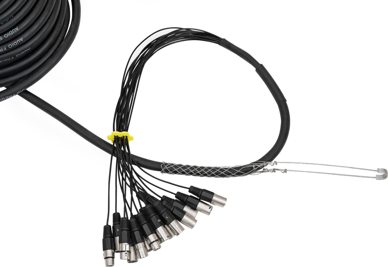 Multicore mit Stagebox, 12IN/4OUT,XLR/XLRKomplett konfektionierter VerteilerAusstattung: Komplett konfektionierter VerteilerFür Multiweg-Signalübermittlung zwischen Bühne und MixerProfessionelle Verteilerbox mit 16 Signalwegen (12 Eingänge und 4 Ausgänge/Returns), 3-pol. XLR-VerbinderHochflexibles 30 m Multicore-Kabel mit Farbkennzeichnung, aufgespleißt in 12 Stecker und 4 KupplungenAlle Signalwege symmetrisch mit 2 Adern und paarweiser AbschirmungSehr preisgünstig.Technische Daten: Anzahl Kanäle: 16Gewicht: 14.2 kgKabellänge: 30 mProduktabmessung, Breite: 180 mmProduktabmessung, Höhe: 90 mmProduktabmessung, Länge: 260 mm
