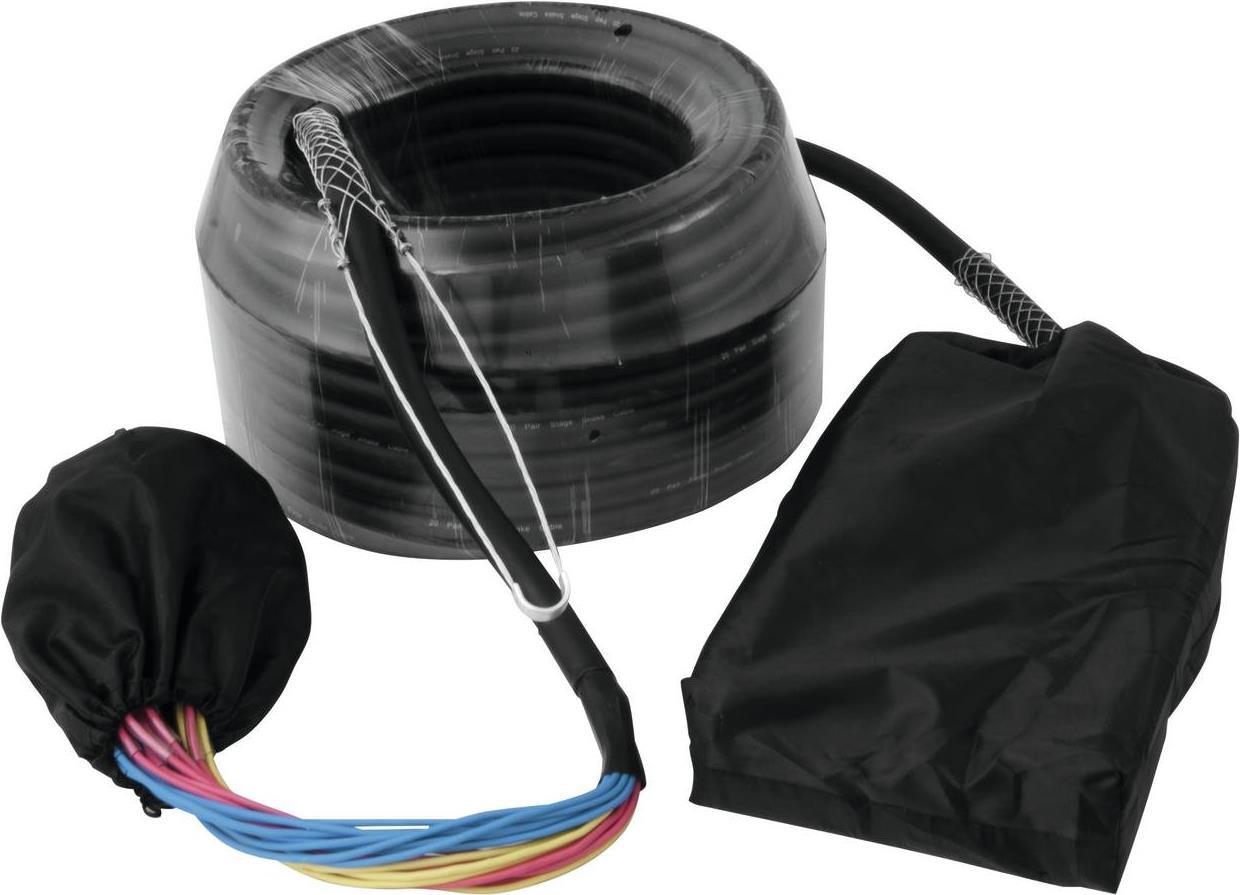 Multicore mit Stagebox, 16IN/4OUT,XLR/XLRKomplett konfektionierter VerteilerAusstattung: Komplett konfektionierter VerteilerFür Multiweg-Signalübermittlung zwischen Bühne und MixerProfessionelle Verteilerbox mit 20 Signalwegen (16 Eingänge und 4 Ausgänge/Returns), 3-pol. XLR-VerbinderHochflexibles 30 m Multicore-Kabel mit Farbkennzeichnung, aufgespleißt in 16 Stecker und 4 KupplungenAlle Signalwege symmetrisch mit 2 Adern und paarweiser AbschirmungSehr preisgünstig.Technische Daten: Anzahl Kanäle: 20Gewicht: 18.3 kgKabellänge: 30 mProduktabmessung, Breite: 180 mmProduktabmessung, Höhe: 90 mmProduktabmessung, Länge: 260 mm