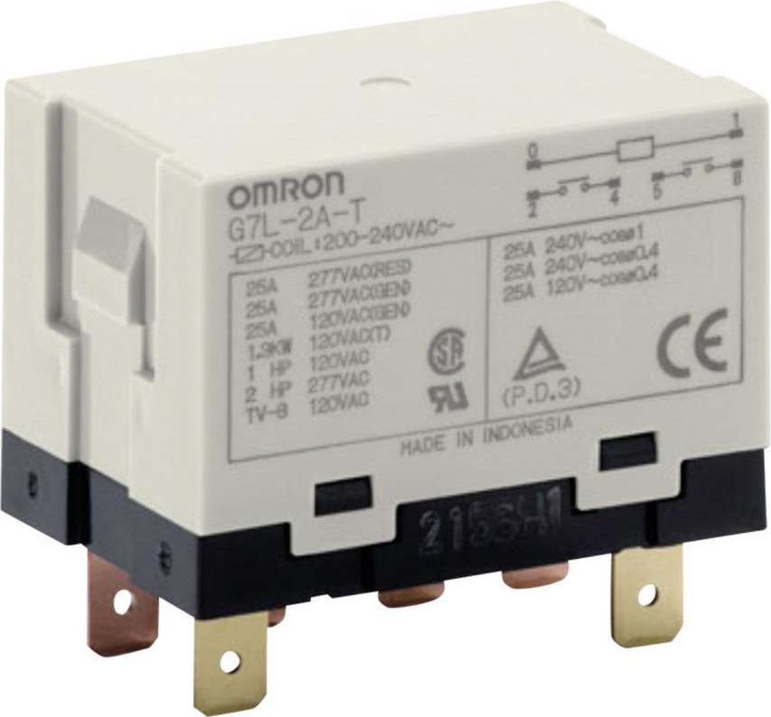 Omron G7L-2A-T 200-240 VAC Steckrelais 240 V/AC 25 A 2 Schließer 1 St. Hochleistungs-Relais G7LMonostabil mit hoher Stoßspannungsfestigkeit und 3 mm Kontaktöffnung. Zuverlässiger Betrieb auch bei kurzzeitigen Spannungsabfällen bis 50 % der