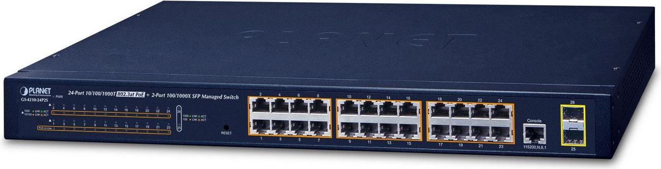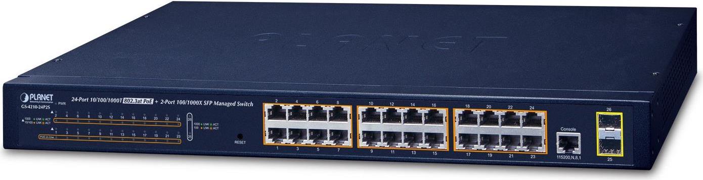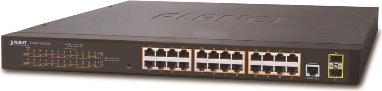 | Produktbeschreibung | PLANET GS-4210-24P2S - Switch - 24 Anschlüsse - verwaltet - an Rack montierbar |