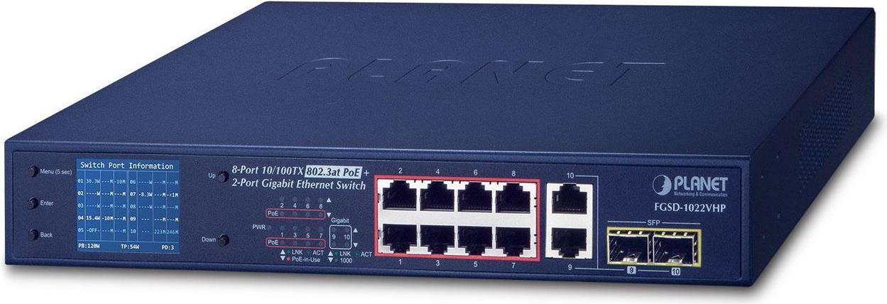 8 x 10/100 (PoE+) + 2 x Kombi-Gigabit-SFP |