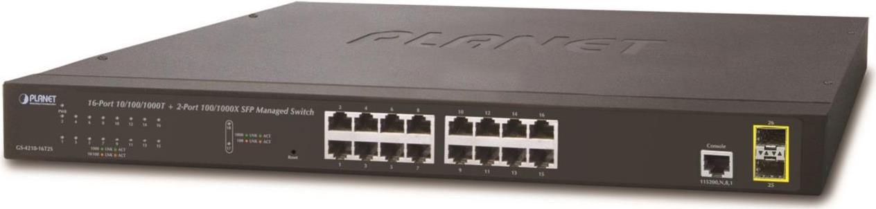 | Produktbeschreibung | PLANET GS-4210-16T2S - Switch - 16 Anschlüsse - managed - an Rack montierbar |