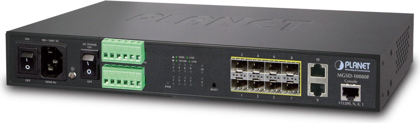 | Ports | 8 x SFP + 2 x 10/100/1000 |