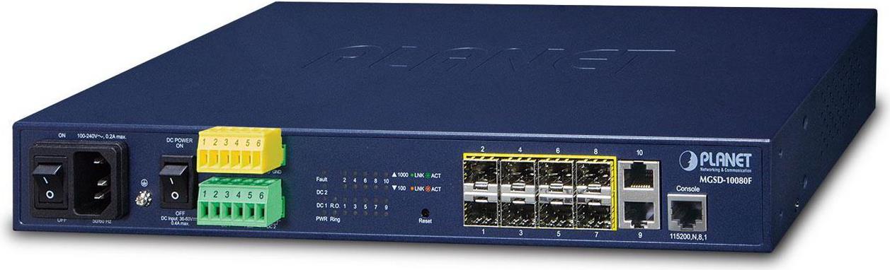 PLANET MGSD-10080F Schalter 8-Port SFP 2xGEth Zarza. (MGSD-10080F)