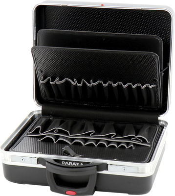 Der PARAT Trolley-Werkzeugkoffer CLASSIC im KingSize-Format bietet Platz für insgesamt 50 Werkzeuge in eigens dafür vorgesehenen hochwertigen Einnähtaschen. Der Rollkoffer CLASSIC KingSize verfügt über zwei Werkzeugtafeln mit eingenähten Trennstegen, eine frei unterteilbare Bodenschale für Kleinteile und eine entsprechende Deckplatte mit weiteren Fächern. Zusätzlich finden Sie zwei Visitenkartentaschen, zwei Stiftschlaufen und ein Sicherheitsfach im Kofferdeckel. Der Koffer hat einen doppelten Aluminiumrahmen und ist mit 30 kg belastbar. Das integrierte Trolley-System mit leichtgängigen Rollen und Teleskopgriff sorgt für einen einfachen Transport des Koffers von A nach B. Der CLASSIC KingSize Roll ist mit Ratschenschlössern inklusive praktischem Sicherheitsmechanismus und Klemmschlössern ausgestattet, die den Kofferinhalt sicher vor unbefugtem Zugriff schützen. Der Premium-Werkzeugkoffer von PARAT ist ideal für Handwerker, die bei der Arbeit ein paar Werkzeuge mehr zur Hand haben müssen.Beschreibung