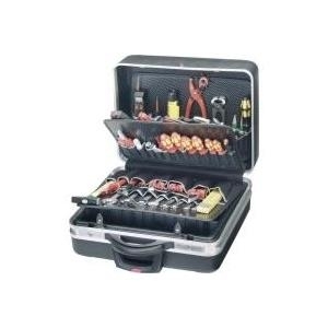 Classic Rollenkoffer King-SizeBelastbarkeit 40 kgFlugtauglichAusstattung: Belastbar bis 40 kgKofferschalen aus X-ABS-Kunststoff, extrem schlagzähFlugtauglichWerkzeugtafeln aus Con-Pearl®Doppel-AluminiumrahmenKippzylinderschlösserRasterscharniereBodengleiterStabiler Griff mit gepolsterten Griffmulden4-fach Teleskopauszug, 1.050 mm, extrabreit, pulverbeschichtet.Technische Daten: Farbe: SchwarzGewicht: 6.8 kgMaterial: X-ABS-Kunststoff, Werkzeugtafeln aus Con-Pearl®Produktabmessung, Breite: 360 mmProduktabmessung, Höhe: 210 mmProduktabmessung, Länge: 470 mmTyp: 489.500-171Lieferumfang: Werkzeugtafel mit 10 EinsteckfächernAbdeckplatte mit 15 Einsteckfächern und 1 Klemmfach 400 mmBodenschale mit Abdeckplatte Höhe 88 mm, frei unterteilbarDokumentenfach im Deckel.Hinweis: Lieferung ohne abgebildetes Werkzeug! CON-Pearl® ist eine eingetragene Marke der friedola®TECH GmbH.