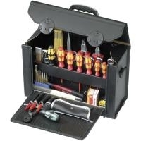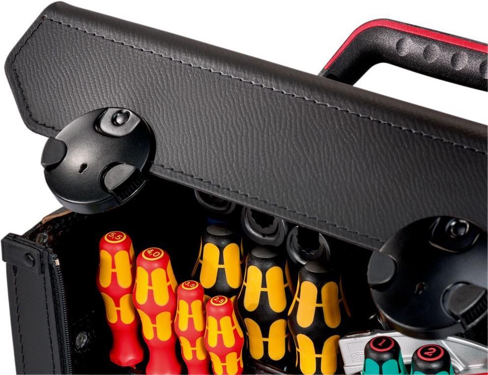 Werkzeugtasche TOP-LINERindslederWerkzeughaltesystem CP-7Ausstattung: Extra dickes, geprägtes LederExtrem belastbar durch AluwinkelverstärkungErmüdungsfreies Tragen durch ergonomisch geformte Griffe mit Griffmulden und stabiler MetallgriffschieneSchützende, integrierte BodengleiterStrapazierfähige Wände aus CON-Pearl®Individuell zu bestückendes Werkzeughaltersystem CP-7.Technische Daten: Farbe: SchwarzGewicht: 3.5 kgMaterial: Rindleder, Seitenwände aluverstärkt, Werkzeugtafeln CON-Pearl®Produktabmessung, Breite: 165 mmProduktabmessung, Höhe: 275 mmProduktabmessung, Länge: 415 mmTyp: 14.000-581Lieferumfang: MittelwandVorderwand aufklappbar, mit 4 Separationen, Tasche für Kleinteile, KlemmfachMittelwand mit CP-7 Werkzeughalter, Ø 11 mm, CP-7 Werkzeughalter, Ø 15 mmRückwand mit CP-7 Werkzeughalter, Ø 26 mmBodenschale aus Stahlblech, verzinktRasterschlösserRingkappen.Hinweis: Lieferung ohne abgebildetes Werkzeug. CON-Pearl® ist eine eingetragene Marke der friedola®TECH GmbH.