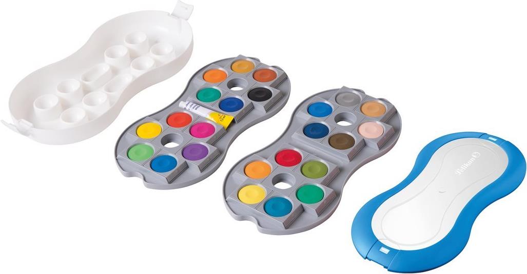 24 Qualitätsfarben für brillantes Malen. Trendiges Design mit 10 extra großen Mischfeldern. Leicht zu reinigende Mischpalette. Leicht auswechselbare Farbschälchen. Farbpalette platzsparend im Deckel einsetzbar. Stabiles Material - ideal für Kinder. Made in Germany.