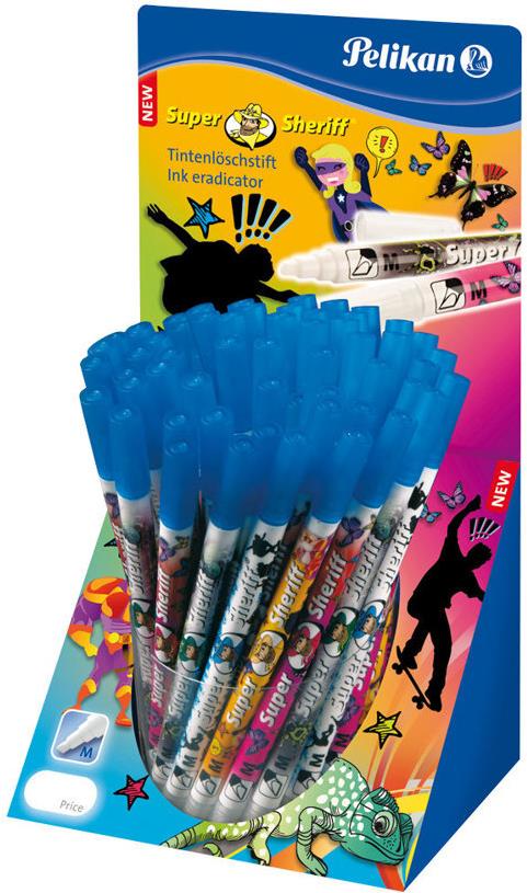 Pelikan Tintenlöscher Super Sheriff 258M, im Thekedisplay zwei Spitzen - löschen & korrigieren - löscht königsblaue (987032)