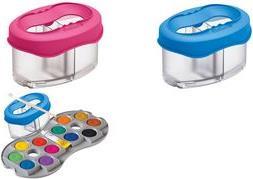 Zwei Wasserkammern und ein Fach für Pinsel. Transparente Optik zum Anzeigen des Wasserstandes. Auslaufschutz. Ansteckbar an Space+ und ...
