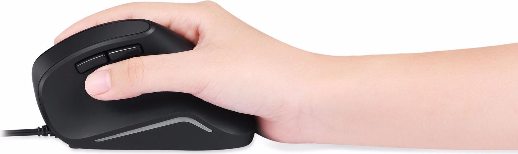 Das vertikale ergonomische Design sorgt vor, dass durch langes Arbeiten mit der Maus keine Schmerzen oder gar Sehnenscheidenentzündungen auftreten. Präventiv kann die Maus eingesetzt werden, um Schmerzen in Hand und Handgelenk vorzubeugen.
