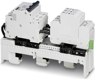 Kombination aus Überspannungsschutz Typ 2 und Ableitervorsicherung, mit Überwachung des Ableiters, in Verbindung mit Statusanzeige und Fernmeldekontakt. ...