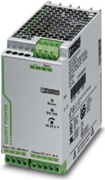 QUINT-PS/ 3AC/24DC/20/CO - Stromversorgung24 V/DC / 20 A480 WEingang 3-phasigEingangsspannungs-Bereich 3x 320 - 575 V/AC / 450 - 800 V/DCAnschlüsse: SchraubklemmenFür höchste AnlagenverfügbarkeitZuverlässiges Starten schwieriger Lasten mit der statischen Leistungsreserve POWER BOOST mit bis zu 1,5fachem Nennstrom dauerhaftSchnelles Auslösen von Standard-Leitungsschutzschaltern mit der dynamischen Leistungsreserve SFB (Selective Fuse Breaking) Technology mit bis zu 6-fachem Nennstrom für 12 msPräventive FunktionsüberwachungTragschienen-Stromversorgung 24 V DC/20 A/CO, tauchlackierte Leiterkarte, primär getaktet, 3-phasig. Mit der SFB Technology (Selective Fuse Breaking Technology) lassen sich erstmalig auch Standard-Leitungsschutzschalter zuverlässig und schnell auslösen.Ausstattung: Weltweit einsetzbar durch Weitbereichseingang und internationales ZulassungspaketHohe Betriebssicherheit durch lange Netzausfallüber brückung unter Volllast und hohe MTBF > 500 000 hParallelschaltbar zur Leistungserhöhung und RedundanzVereinfachte Inbetriebnahme durch LED-Funktionsüberwachung.Technische Daten: Anschluss (Bauelemente): SchraubklemmeAnzahl Ausgänge: 1 xAnzahl Phasen: 3Ausgangsspannung: 24 V/DCAusgangsspannung (max.): 29.5 V/DCAusgangsspannung (min.): 18 V/DCAusgangsspannung (nom.): 24 V/DCAusgangsstrom (max.): 20 AEingangsspannung (max.): 575 V/ACEingangsspannung (min.): 320 V/ACEingangsspannung (nominal): 400 V/AC,450 - 800 V/DCEingangsspannungs-Bereich: 3x 320 - 575 V/AC / 450 - 800 V/DCGewicht: 1.5 kgHerst.-Teilenr.: 2320924Leistung: 480 WNetzgeräte-Typ (Kategorisierung): Hutschienen-Netzteil (DIN-Rail)Netzteiltyp: SchaltnetzteilProduktabmessung, Breite: 69 mmProduktabmessung, Höhe: 130 mmTyp (Hersteller-Typ): QUINT-PS/ 3AC/24DC/20/CO