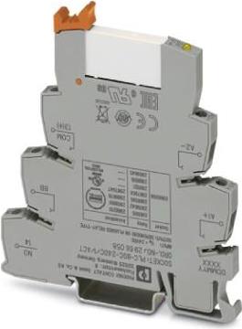 PLC-INTERFACE für Ausgabefunktionen, bestehend aus Grundklemme PLC-BSC.../ACT mit Schraubanschluss und steckbarem Miniaturrelais mit Leistungskontakt, zur Montage auf Tragschiene NS 35/7,5, 1 Schließer, Eingangsspannung ...