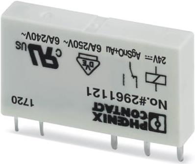 REL-MR- 24DC/21AU - EinzelrelaisREL-MR- 24DC/21AUSteckbare Miniaturrelais, mit Mehrlagenkontakt, 1 Wechsler, Eingangsspannung 24 V DC, Schaltspannung max. 30 V AC/36 V DC, Grenzdauerstrom 6 ATechnische Daten: Anschluss (Bauelemente): LötpinsKontaktart (LOV): 1 WechslerKontaktmaterial: AgSnO + HartvergoldungNennspannung Spule: 24 V/DCProduktabmessung, Breite: 5 mmProduktabmessung, Höhe: 28 mmProduktabmessung, Tiefe: 15 mmRelais-Typ (Kategorisierung): PrintrelaisSchaltleistung (max.): 1500 VASchaltspannung (max.): 250 V/ACSchaltstrom (max.): 6 AWiderstand (Spule): 3390 ?